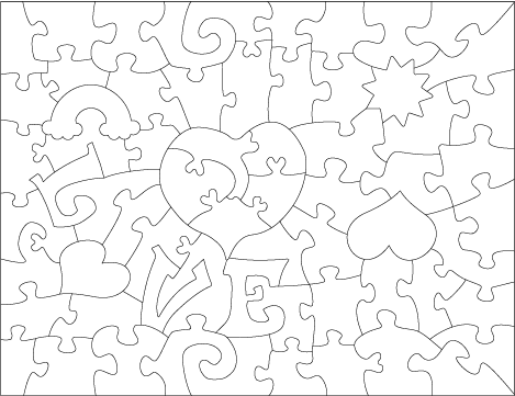 Many hands joining together to form the shape of a heart. Created especially for Pueblo Pride Festival 2025. The finished puzzle is 5 x 6.5 inches. Contains 65 irregularly shaped pieces including pieces shaped as the letters "L O V E", hearts, rainbow and sun. This puzzle is nicely packaged in a cotton drawstring bag.